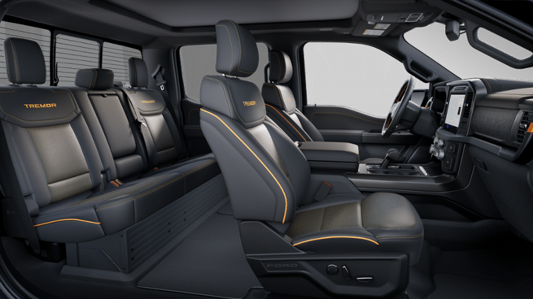 2025 F150 TREMOR 4WD 3.5L V6 EcoBoost 2nd Row Heated Seats, 4 Pickup Box Tie-Down Plates, Ambient Lighting, Auto-Dimming Rear-View Mirror, Bed Utility Package, Console Worksurface, Equipment Group 402A High, Front Axle w/Torsen Differential, Heads-Up Display, Heated Steering Wheel, Integrated Trailer Brake Controller, LED Box Lighting, LED Taillamps, Media Bin Door, Mobile Office Package, Modular Front Bumper & Carbon Black Rear Bumper, Partitioned Lockable Rear Storage, Power Glass Heated Sideview Mirrors, Power Tailgate, Power-Adjustable Pedals w/Memory, Premium Wrapped Steering Wheel, Radio: B&O Unleashed Sound System by Bang & Olufsen, Rain-Sensing Wipers, Tow/Haul Package, Twin Panel Moonroof, Two-Speed Automatic AWD w/Mechanical Locking 4WD, Unique Tremor Leather-Trimmed Bucket Seats, Universal Garage Door Opener, Wireless Charging.