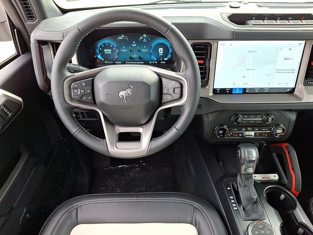 60th Anniversary Package (Black Molded-in-Color Door Handles, Hard Top Sound Deadening Headliner, Leather-Trimmed/Vinyl Bucket Seats, Painted Door Handles, Steel Front Bumper, Warm Alloy Grille, Wheels: 17 Gravity Gray-Painted Alloy, and Wimbledon White-Painted Hard Top), Equipment Group 314A Lux Package (3.73 Axle Ratio, 360-Degree Camera, Adaptive Cruise Control, Evasive Steering Assist, Front Parking Sensors, Heated Leather-Trimmed/Vinyl Bucket Seats, Radio: B&O Sound System by Bang and Olufsen, and Sideview Mirrors), Ford Connectivity Package (1-Year Included), Sasquatch Graphics Package, Exterior Parking Camera Rear, Heated steering wheel, SiriusXM with 360L (3-Year Plan), SYNC 4, 4-Wheel Disc Brakes, 7 Speakers, ABS brakes, Air Conditioning, Alloy wheels, AM/FM radio: SiriusXM with 360L, AM/FM Stereo, Auto High-beam Headlights, Auto-dimming Rear-View mirror, Automatic temperature control, Brake assist, Compass, Connected Navigation, Delay-off headlights, Driver door bin, Driver vanity mirror, Dual front impact airbags, Dual front side impact airbags, Electronic Stability Control, Emergency communication system: 911 Assist, Front anti-roll bar, Front Bucket Seats, Front Center Armrest, Front dual zone A/C, Front fog lights, Front reading lights, Front wheel independent suspension, Fully automatic headlights, Heated door mirrors, Heated front seats, Illuminated entry, Integrated roll-over protection, Leather Shift Knob, Low tire pressure warning, Navigation system: Connected Navigation, Occupant sensing airbag, Outside temperature display, Overhead airbag, Overhead console, Panic alarm, Passenger door bin, Passenger vanity mirror, Power door mirrors, Power driver seat, Power passenger seat, Power steering, Power windows, Radio data system, Rear seat center armrest, Remote keyless entry, Second Row Panel Roof Bag Storage, Security system, Speed control, Split folding rear seat, Steering wheel mounted audio controls, Tachometer, Telescoping steering wheel, Tilt steering wheel, Traction control, Trip computer, Variably intermittent wipers, and Voltmeter. We offer all factory rebates, bonus cash, loyalty cash, college/military rebate, and finance incentives that are available. Rebates & incentives may be in lieu of special financing. Not all customers will qualify for all incentives. This price cannot be combined with any other offer. Prices are subject to change. Your only additional costs are sales tax, tag and title fees for in which state you register the vehicle. Although every reasonable effort has been made to ensure the accuracy of the information contained on this site, absolute accuracy cannot be guaranteed.