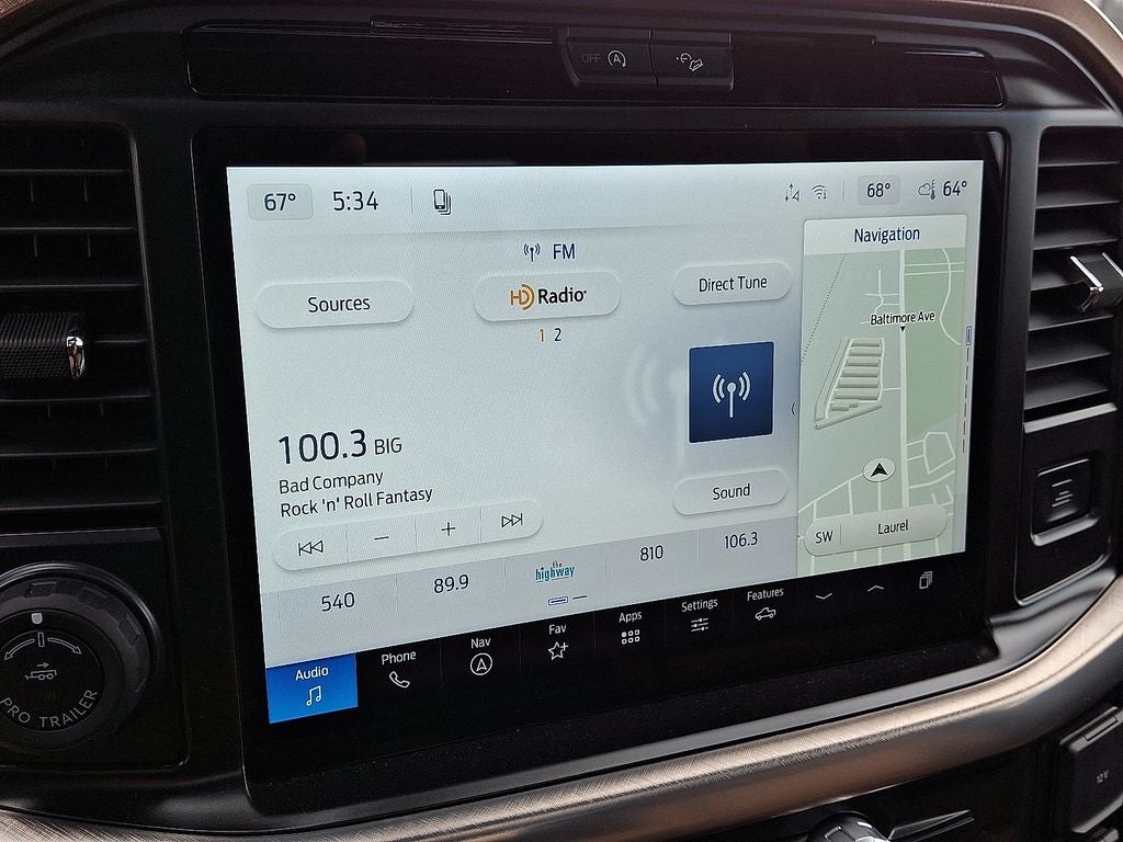 Equipment Group 601A High (Electronic Locking with 3.55 Axle Ratio, King Ranch Multicontour Leather Bucket Seats, Power-Deployable Running Boards, Radio: B&O Unleashed Sound System by Bang & Olufsen, and Wheels: 20 Chrome-Like PVD), FX4 Off-Road Package (4x4 FX4 Off-Road Bodyside Decal, Hill Descent Control, Monotube Rear Shocks, and Off-Road Tuned Front Shock Absorbers), Internet access capable: 5G Modem - Ford Connectivity Package, GVWR: 7,400 lbs Payload Package, AM/FM radio: SiriusXM with 360L, Heated front seats, Heated rear seats, Memory seat, Navigation system: Connected Navigation, Pro Power Onboard - 2KW, Twin Panel Moonroof, 4-Wheel Disc Brakes, 8 Speakers, ABS brakes, Adjustable pedals, Air Conditioning, Alloy wheels, Auto High-beam Headlights, Auto tilt-away steering wheel, Auto-dimming door mirrors, Auto-dimming Rear-View mirror, Automatic temperature control, Brake assist, Chrome wheels, Compass, Delay-off headlights, Driver door bin, Driver vanity mirror, Dual front impact airbags, Dual front side impact airbags, Electronic Stability Control, Emergency communication system: SYNC 4 911 Assist, Front anti-roll bar, Front Bucket Seats, Front Center Armrest, Front dual zone A/C, Front fog lights, Front reading lights, Front wheel independent suspension, Fully automatic headlights, Garage door transmitter, Genuine wood dashboard insert, Heated door mirrors, Heated steering wheel, Illuminated entry, Leather steering wheel, Low tire pressure warning, Occupant sensing airbag, Outside temperature display, Overhead airbag, Overhead console, Panic alarm, Passenger door bin, Passenger vanity mirror, Pedal memory, Power door mirrors, Power driver seat, Power passenger seat, Power steering, Power windows, Radio data system, Rain sensing wipers, Rear reading lights, Rear seat center armrest, Rear step bumper, Rear window defroster, Remote keyless entry, Security system, Speed control, Split folding rear seat, Steering wheel memory, Steering wheel mounted audio controls, Tachometer, Telescoping steering wheel, Tilt steering wheel, Traction control, Trip computer, Turn signal indicator mirrors, Variably intermittent wipers, and Ventilated front seats. We offer all factory rebates, bonus cash, loyalty cash, college/military rebate, and finance incentives that are available. Rebates & incentives may be in lieu of special financing. Not all customers will qualify for all incentives. This price cannot be combined with any other offer. Prices are subject to change. Your only additional costs are sales tax, $800 processing fee (not required by law), tag and title fees for in which state you register the vehicle. Although every reasonable effort has been made to ensure the accuracy of the information contained on this site, absolute accuracy cannot be guaranteed.